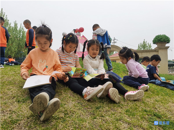 沐浴书香,浸润心灵,孩子们、教师们聚在一起共同阅读。