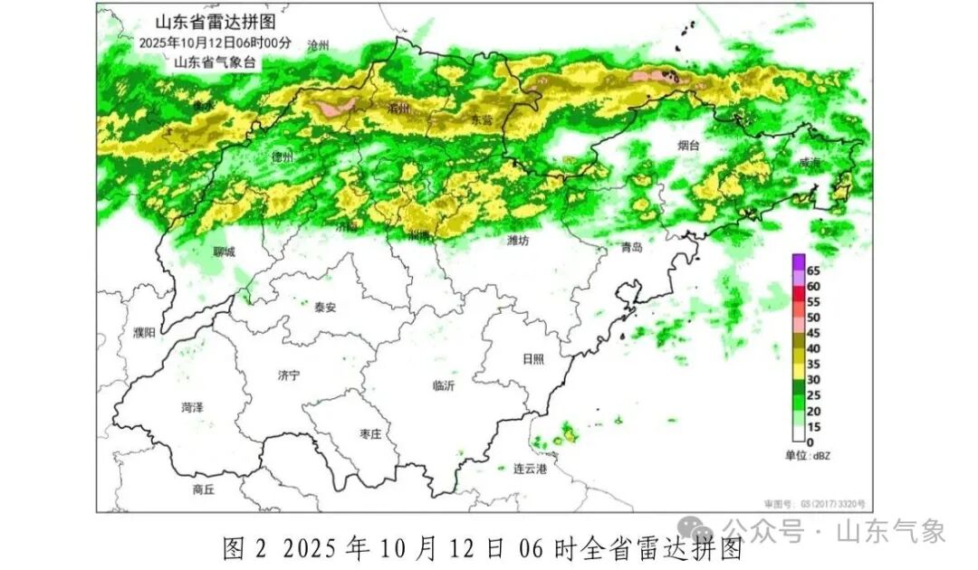 目前,降水回波主要位于聊城、德州、济南、滨州、淄博、东营、潍坊、青岛、烟台和威海(图 2)。