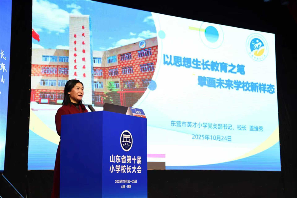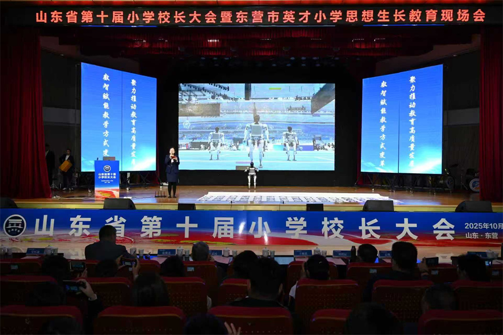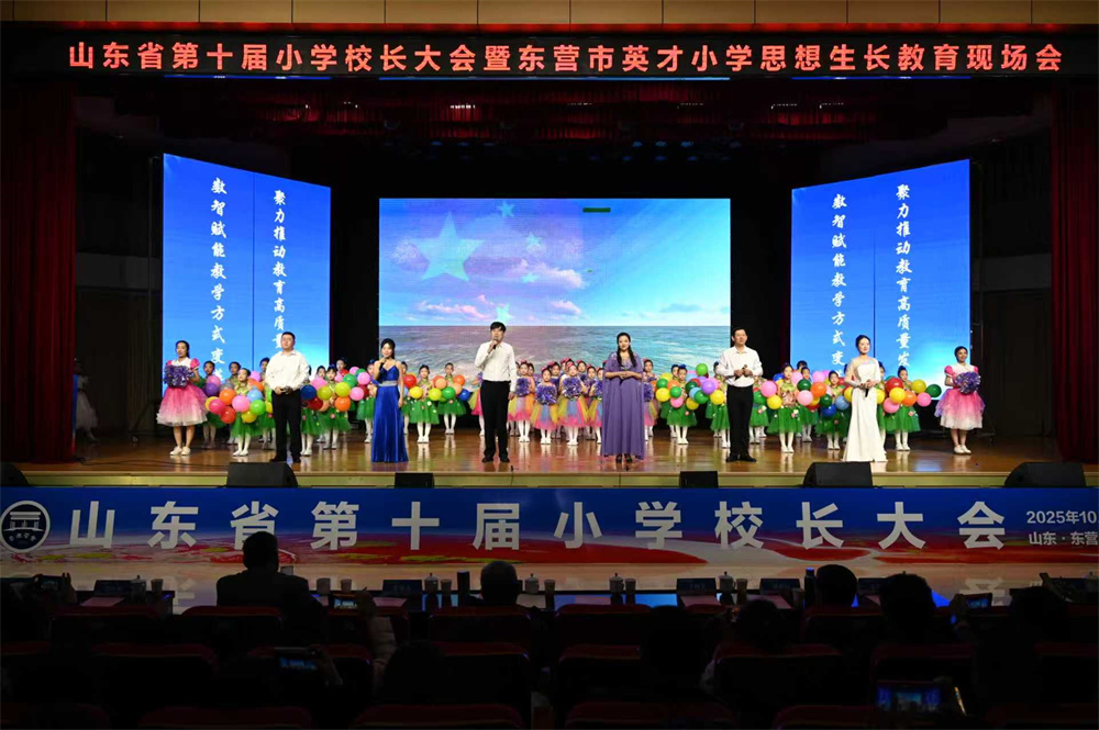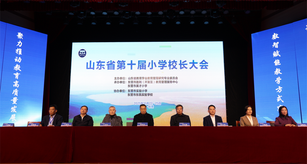 10月23日上午,山东省第十届小学校长大会在东营市英才小学拉开帷幕。本次大会以“数智赋能教学方式变革 聚力推动教育高质量发展”为主题,聚焦数字时代小学教育转型路径,探索全环境育人新实践。山东省教育学会、东营市教育局、东营经济技术开发区管委会、东营市胜利(开发区)教育管理服务中心以及东营市英才小学领导出席大会开幕式。来自全省的小学校长、中层干部、骨干教师共计750余人参加此次大会。