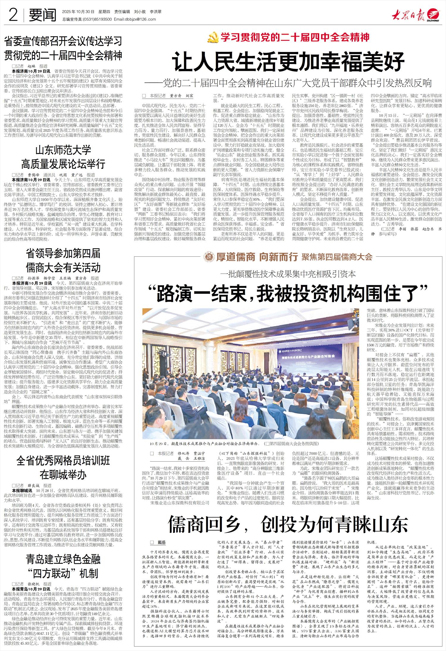 十月的齐鲁大地,儒商大会再度聚焦各路资本的目光。本届儒商大会,一批深耕人工智能、新能源新材料等新质生产力领域的山东籍青年才俊,携技术、带团队、怀梦想回到故乡。