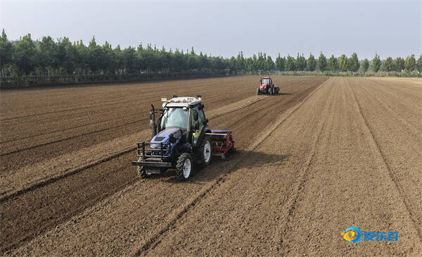 爱东营讯 近日,在广饶县广饶街道十三村的农田里,农民驾驶拖拉机正在播种冬小麦。