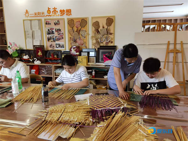 东营经济技术开发区胜宏社区为社区困难居民提供免费的竹编培训,成品可按件计酬。