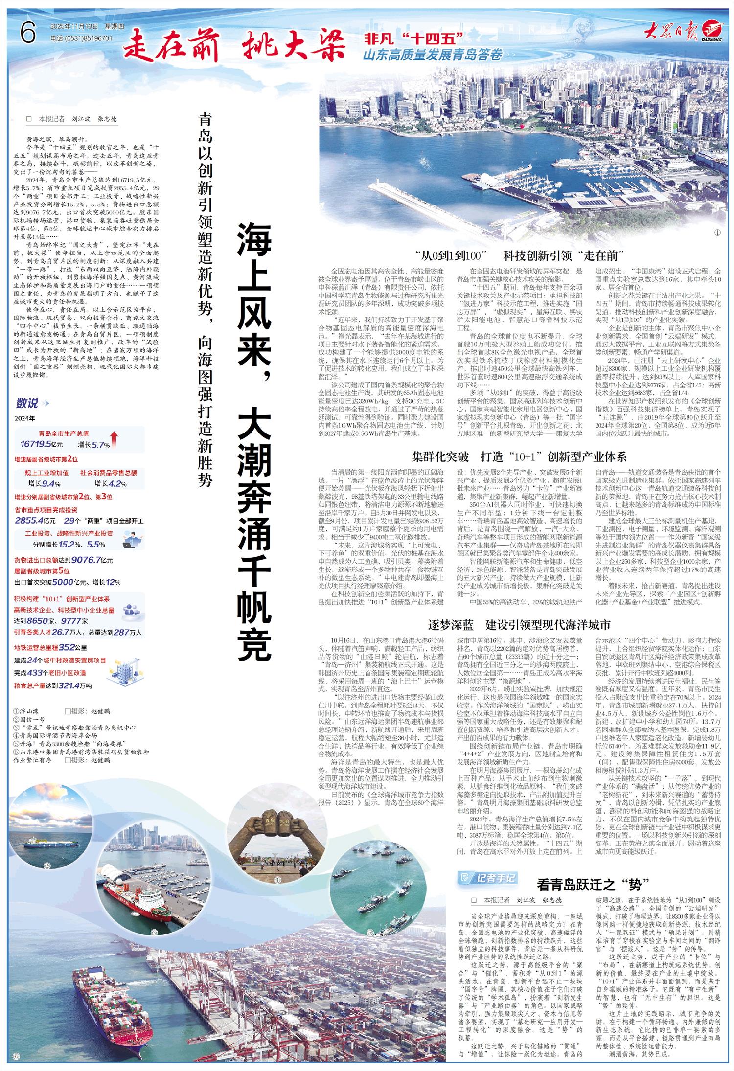 从关键技术攻坚的“一子落”,到现代产业体系的“满盘活”;从传统优势产业的“老树新花”,到未来新兴赛道的“蓄势待发”,青岛以创新为楫,凭借扎实的产业底蕴、澎湃的科创动能和向海图强的战略定力,不仅在国内城市竞争中构筑起独特优势,更在全球创新链与产业链中积极谋求更重要的位置。一场以科技创新为引领的深刻变革,正在黄海之滨全面展开,驱动着这座城市向更高能级跃迁。
