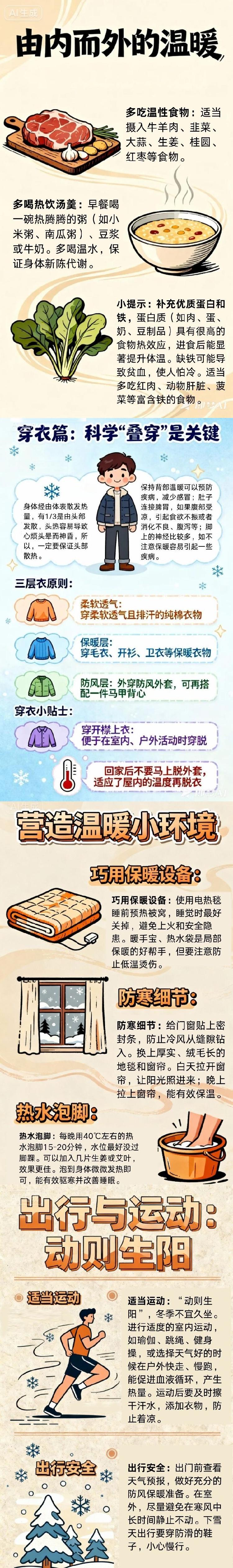 本周末,新一股强冷空气将来袭。这股冷空气将自西向东影响我国大部地区。气温将普遍转为较常年同期偏低,大片地区气温会创下半年来新低。17日下午到18日白天,受较强冷空气影响,山东预计将迎来今年入冬后的第一场雪。衣柜里的厚装可以穿起来喽!现在为大家送上保暖小知识,让你把保暖正式提上日程!