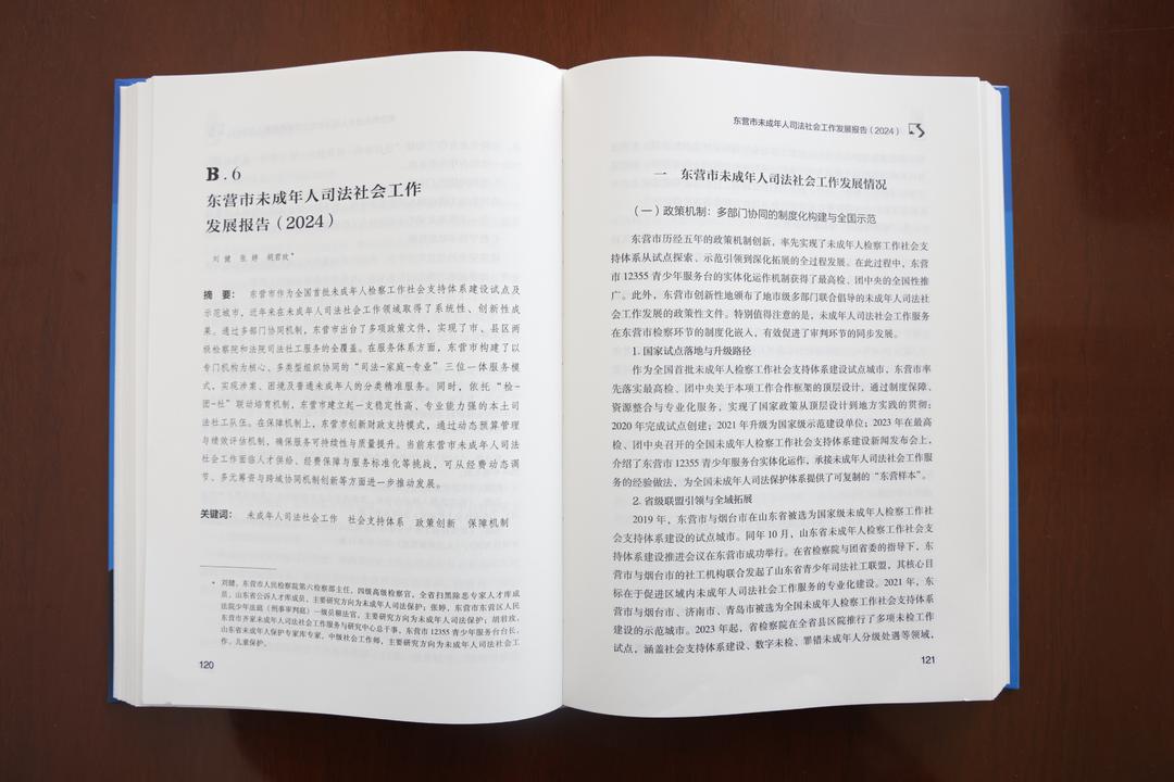 该报告地方篇选取北京市、上海市、深圳市、南京市、东营市、郑州市、昆明市七个代表性城市,详细阐述了这些地区2024年及以前未成年人司法社会工作发展的不同情况及独特经验。其中,《东营市未成年人司法社会工作发展报告(2024)》作为地方篇的重要组成部分,系统呈现了东营市作为全国首批未成年人检察工作社会支持体系建设试点及示范城市,近年来在未成年人司法社会工作领域取得的系统性、创新性成果。这份报告的出炉,标志着以“东营模式”为代表的未成年人司法社会工作已从“先行先试”走向“成熟定型”,为全国未成年人司法社会工作提供了可复制、可推广的宝贵经验。