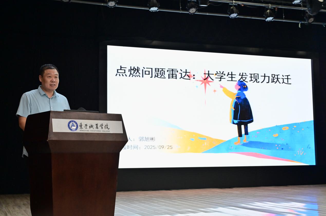 东营市建筑设计研究院有限公司总建筑师郭旭彬率先开讲。他以《点燃问题雷达:大学生发现力跃迁》为题,聚焦“发现力”,提出从课堂到产业的发现力跃迁路径,助力学生适应时代需求和行业发展。