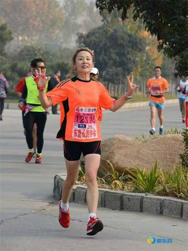 拥有东营全马永久号码和免费参赛资格的60岁跑者毕爱玲: