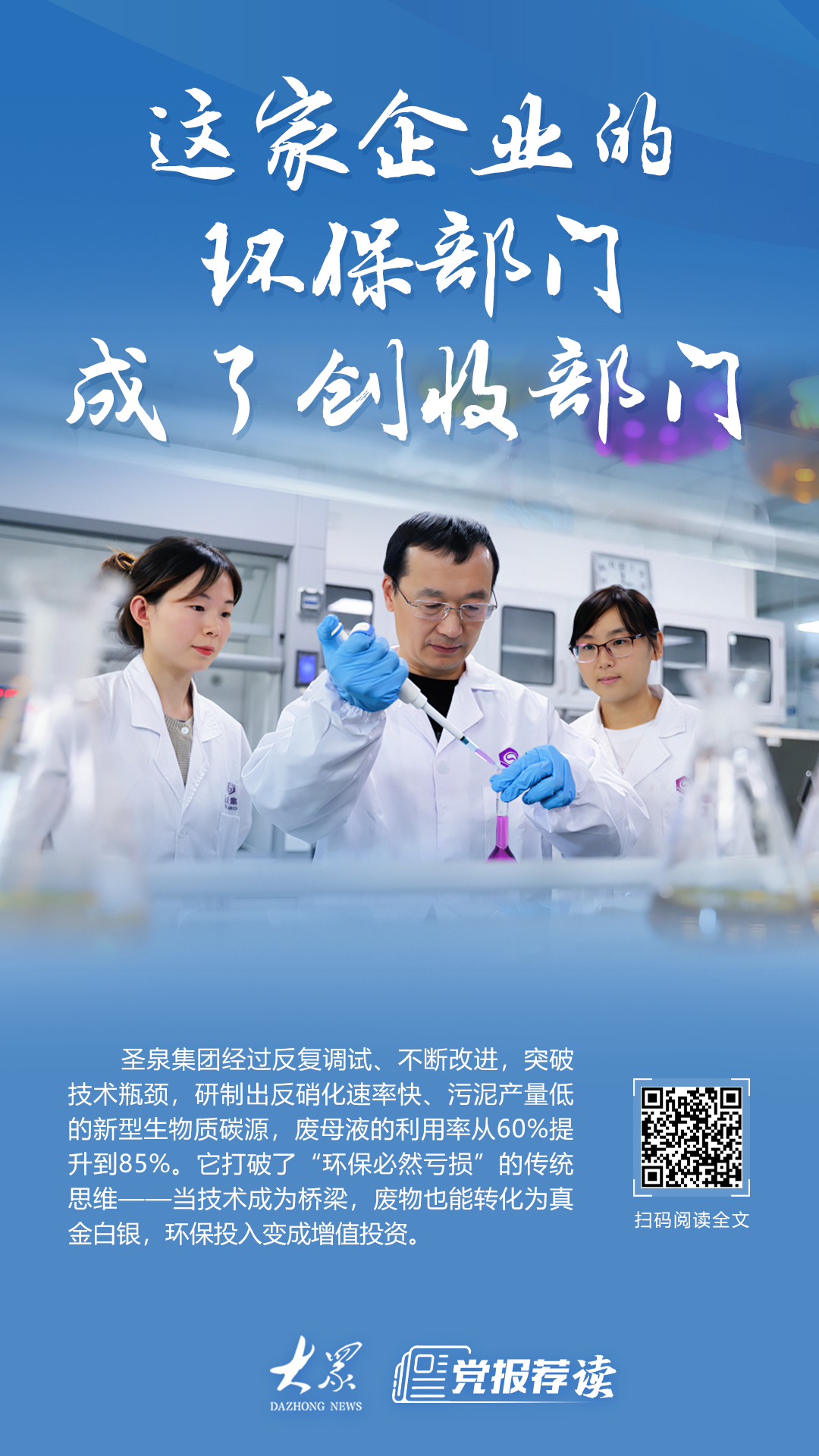 圣泉集团环保研究所经过反复调试、不断改进,突破技术瓶颈,研制出反硝化速率快、污泥产量低的新型生物质碳源,且废母液的利用率从60%提升到85%。