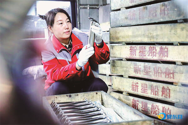 爱东营讯 12月1日,在东营新星船舶设备制造有限公司内,工人正在检验即将发往中东的船舶构件订单。