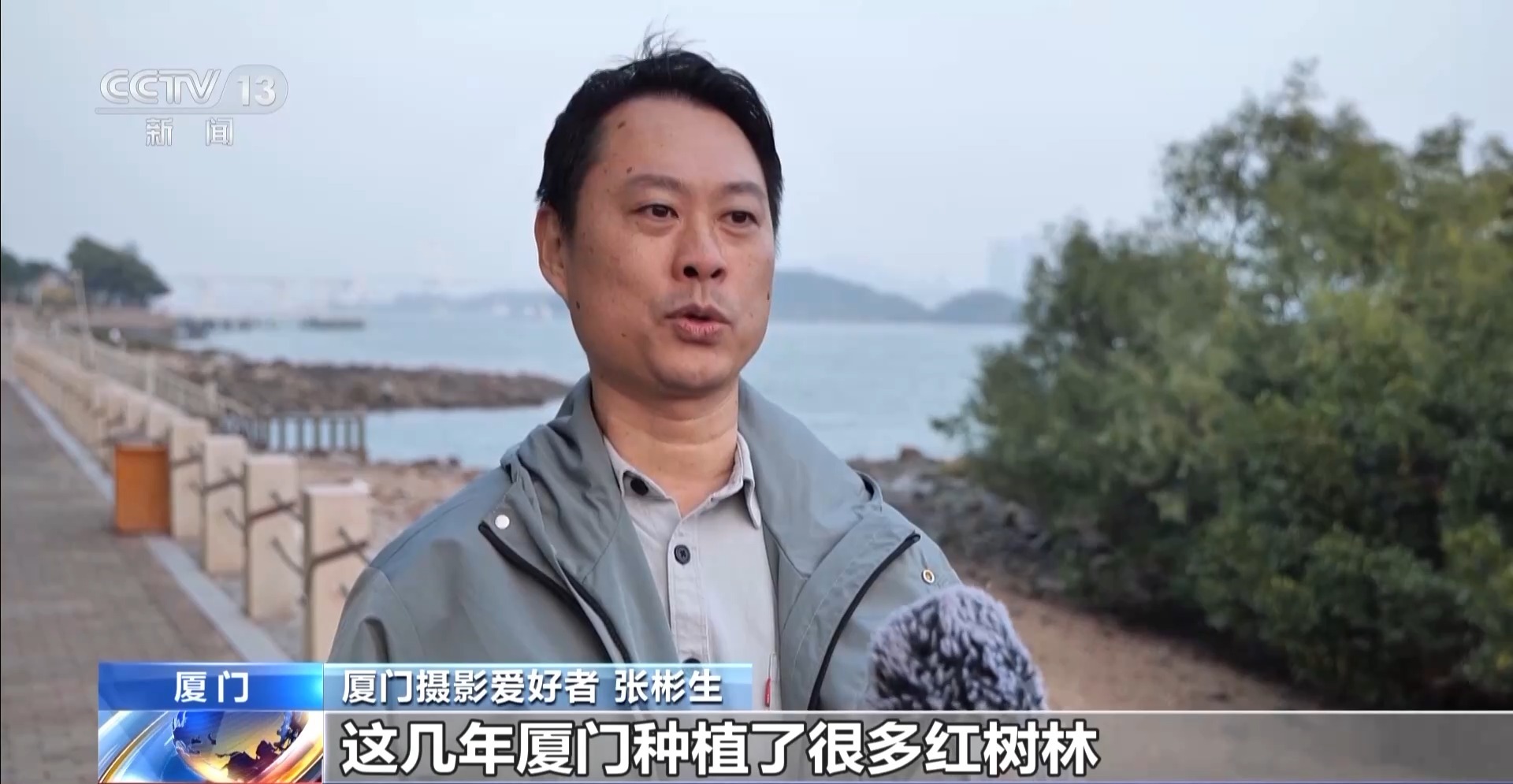 厦门摄影爱好者 张彬生:这几年厦门种植了很多红树林,船只通过保护区都要降速,生态环境越来越好,我也越来越容易拍到它们,有时候还能拍到海豚妈妈带着自己的小崽。我觉得它们应该都是有灵性的,知道我们在用这种方式来欢迎它们、守护它们。