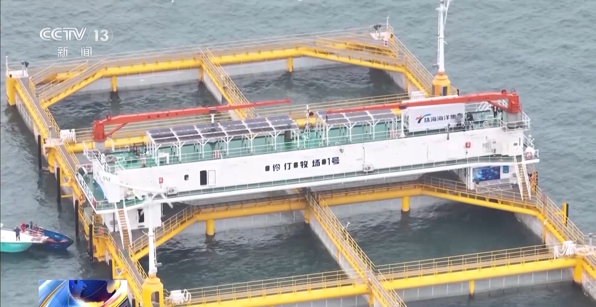 珠海海洋集团 海洋装备研究院安全主管 屈宗辉:整个养殖网箱有6万立方的水体,只需要6到8人就可以做到,相较于同样产出的重力式网箱,节约人力成本50%到70%。