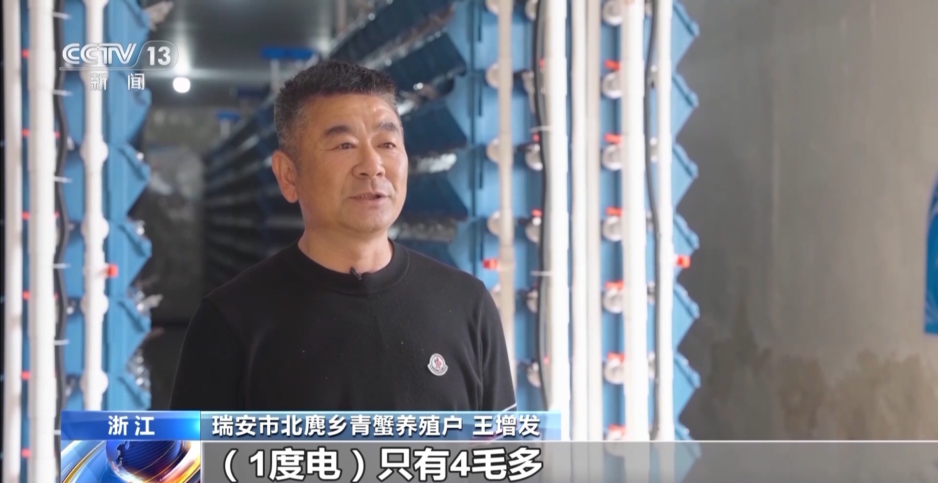 瑞安市北麂乡青蟹养殖户 王增发:绿电引进的话,我们的青蟹养殖成本大大降低了,1度电只有4毛多,以前要9毛多,相差一半多。