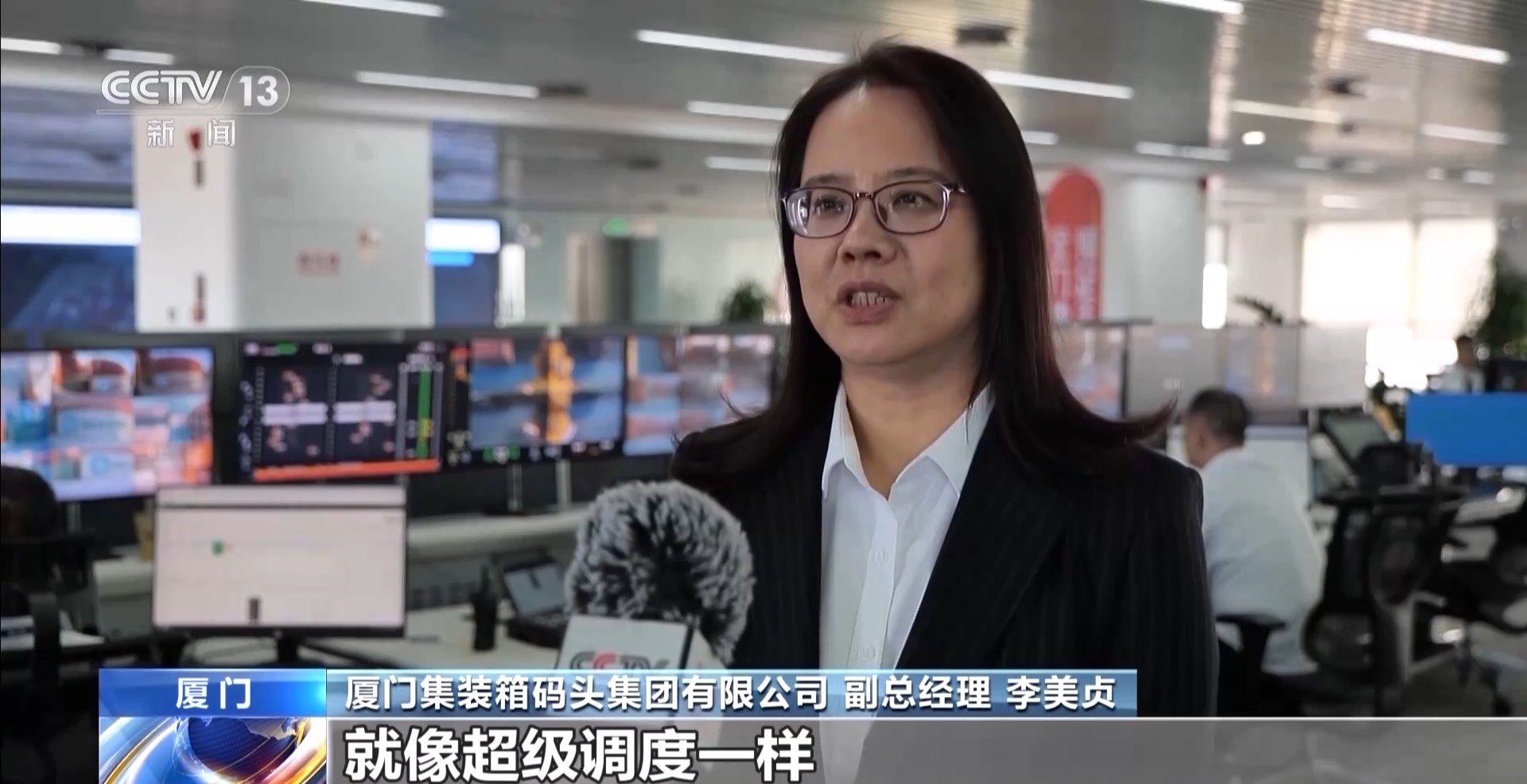 厦门集装箱码头集团有限公司 副总经理 李美贞:“智慧大脑”指挥系统,就像“超级调度”一样,能自动为拖车优化路径,提升码头作业效率,减少不必要的能源消耗和排放。
