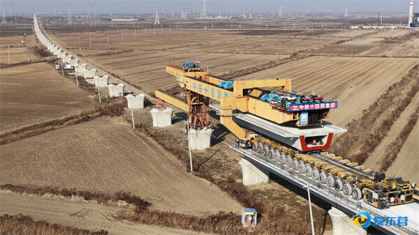 爱东营讯 眼下,津潍高铁广饶段项目已进入箱梁架设的攻坚阶段。面对冬季施工挑战,工人们正争分夺秒,全力推进工程进度,确保在春节前完成箱梁架设任务,为后续轨道铺设与全线贯通创造必要条件。