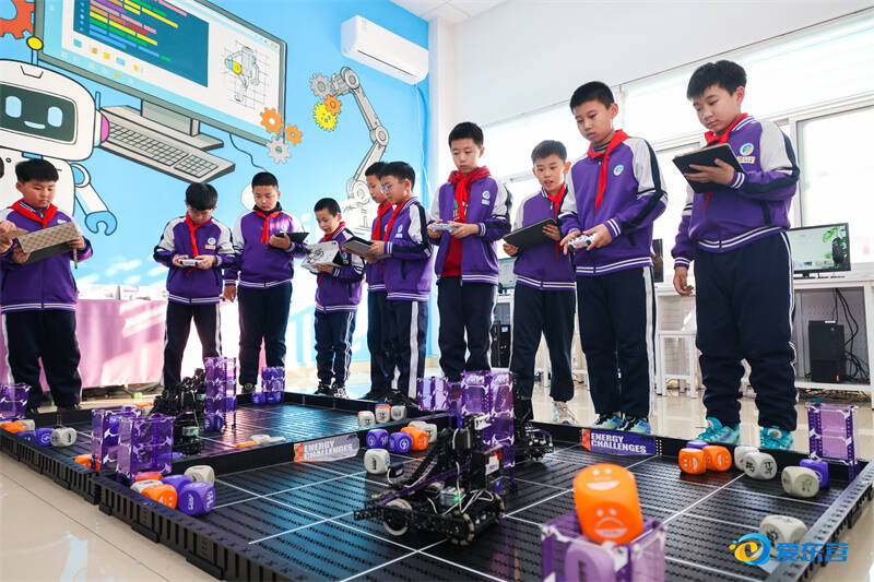 在英才小学机器人编程实训教室里,同学们正手握遥控器精准操控。通讯员 苏志浩