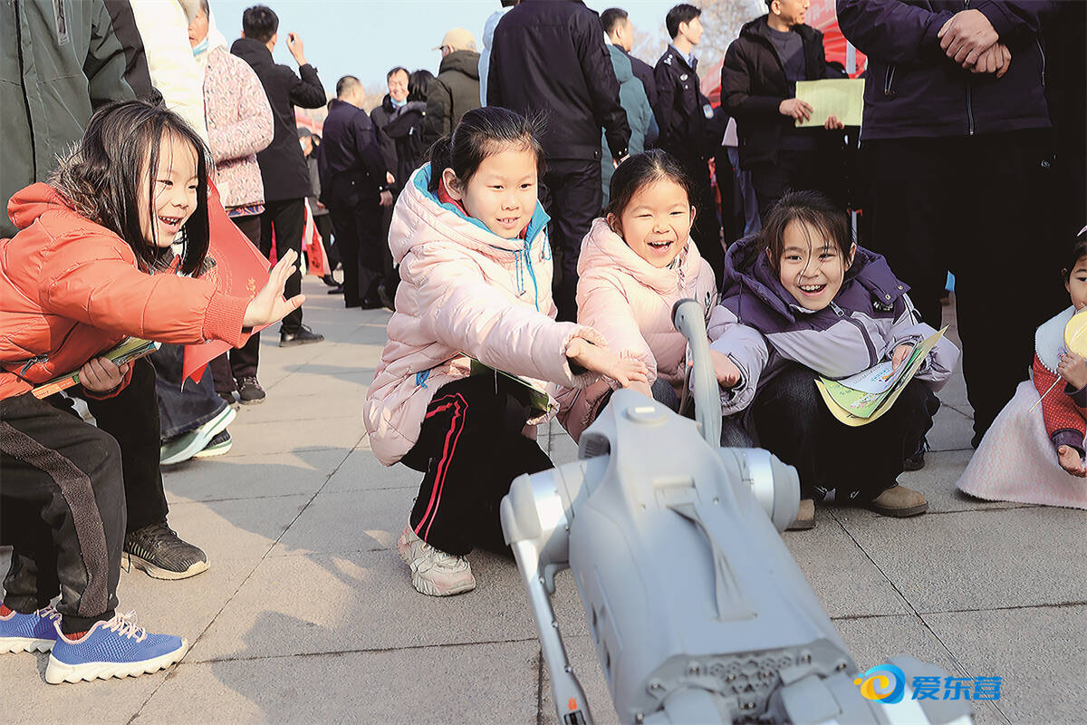 传统韵味十足,现代科技同样圈粉无数。集市中,市科协带来的“四轮机器狗”刚刚登场,便以其灵巧的动作和丰富的交互能力吸引了许多市民驻足体验,为这场活动注入了满满的时尚感和科技感。“它能拜年吗?”“可不可以和我握个手?”在工作人员的操作下,“四轮机器狗”用灵活又可爱的姿态为群众答疑,趣味十足,引得孩子们阵阵惊呼。