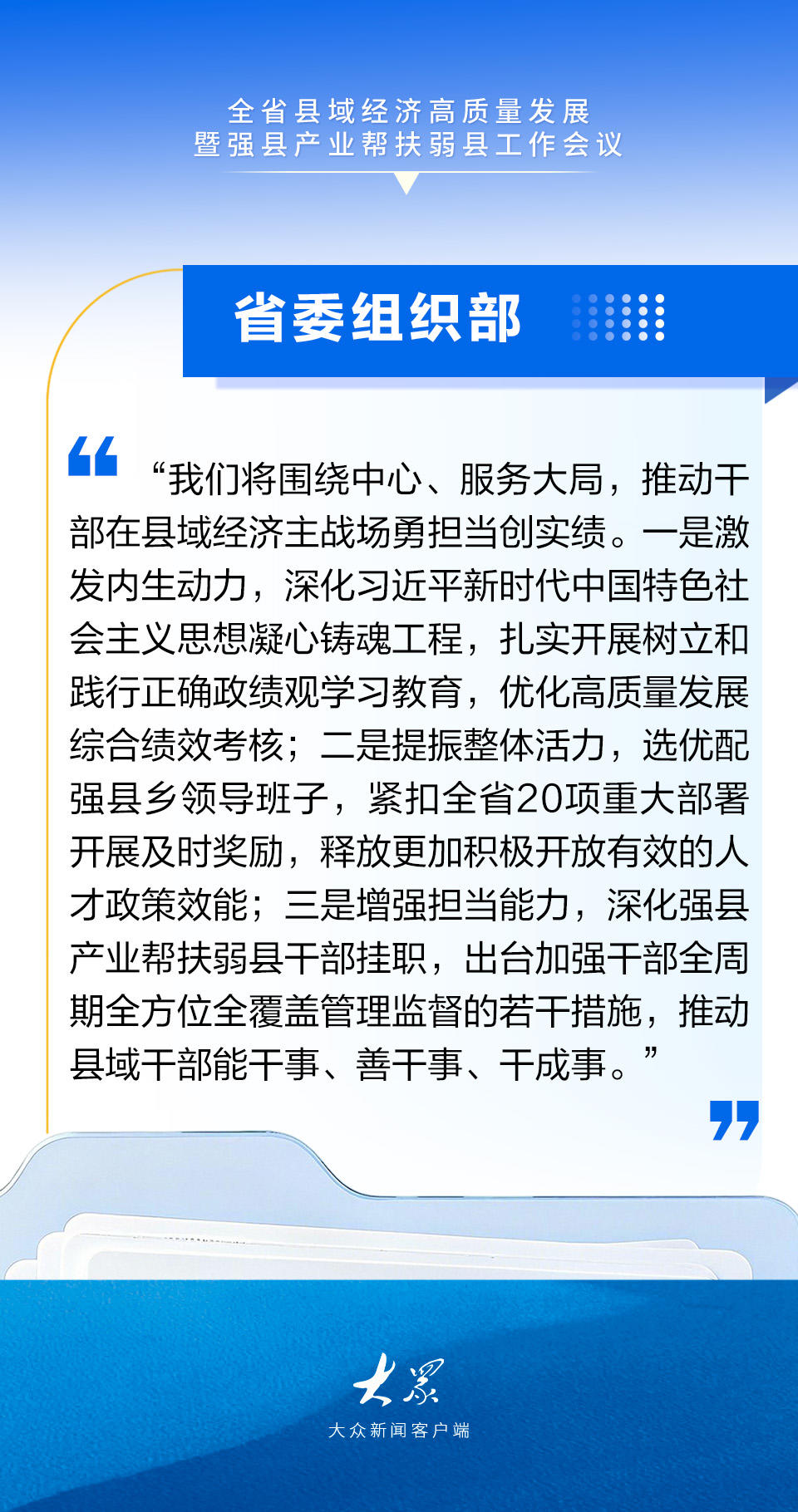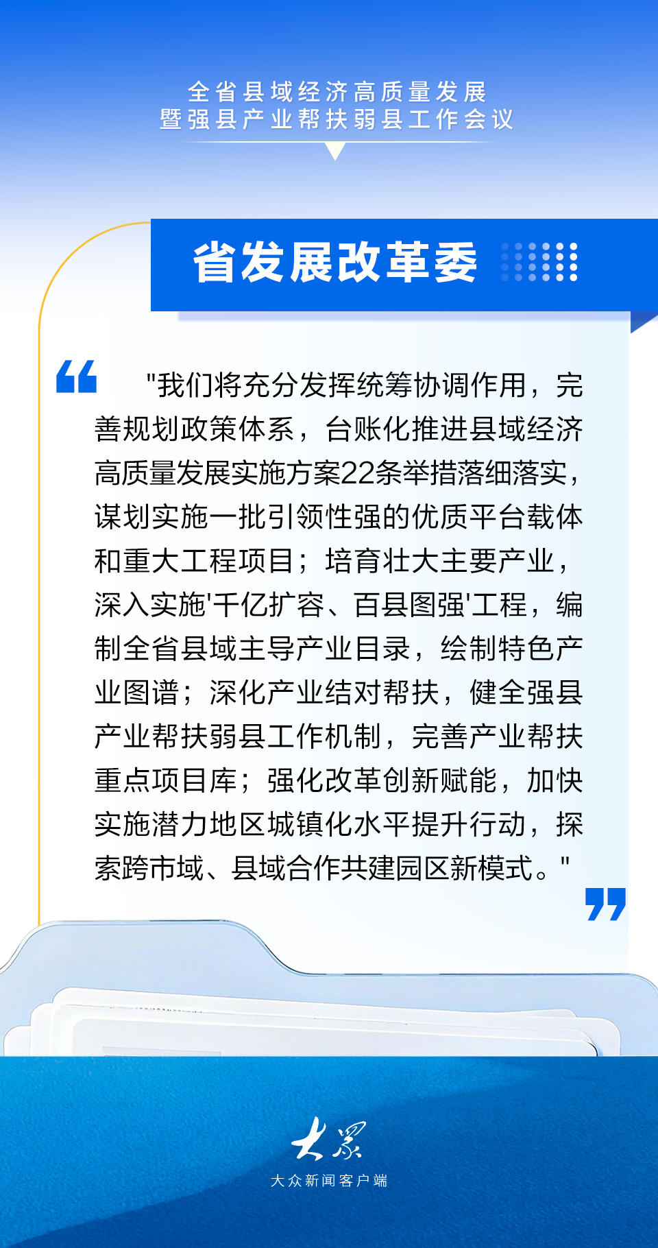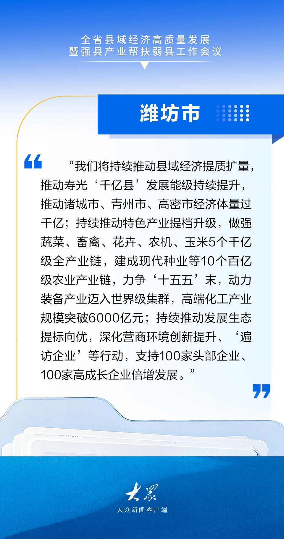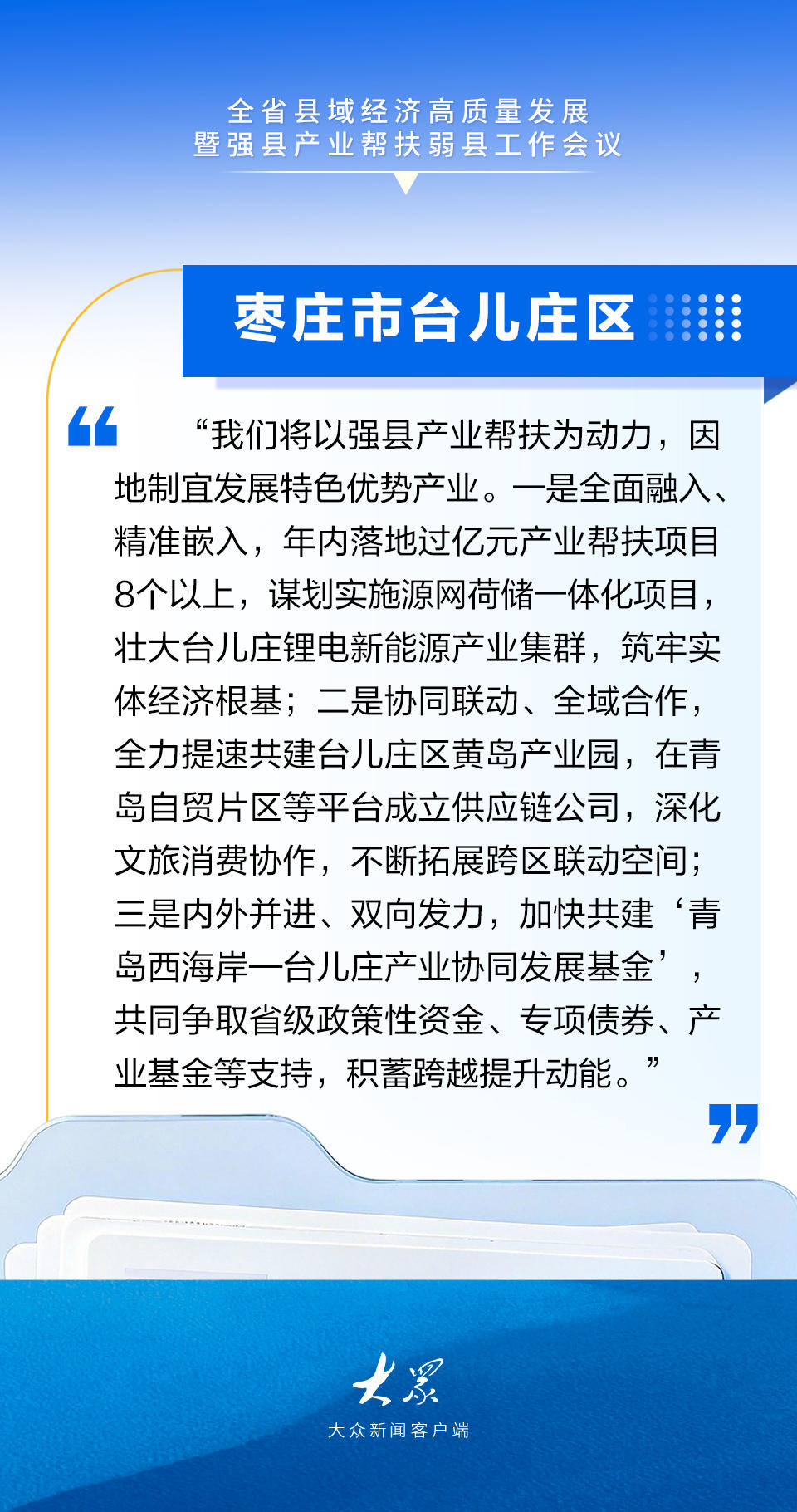 4月27日上午,山东召开全省县域经济高质量发展暨强县产业帮扶弱县工作会议。会上,省委组织部、省发展改革委、青岛市、潍坊市、济南市历城区、滨州市博兴县、枣庄市台儿庄区作了交流发言。